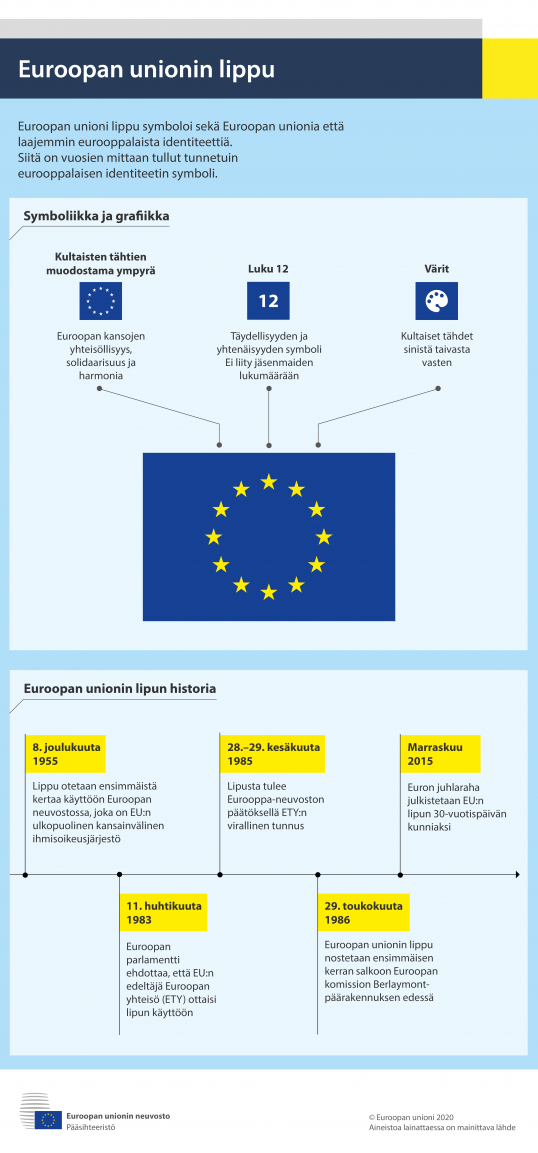 Euroopan lipusta on tullut yksi tunnetuimmista symboleista Euroopassa ja muualla maailmassa. Se symboloi Euroopan unionia ja laajemmin myös Euroopan yhtenäisyyttä ja eurooppalaista identiteettiä. Lippu ei ole vain EU-elinten tunnus, vaan se edustaa miljoonien eurooppalaisten arvoja ja yhteistä identiteettiä.